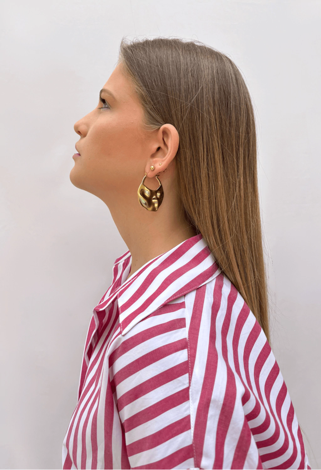 Nossa Argola Organic é para quem ama acessórios impactantes e cheios de personalidade. Seu design orgânico e slim tem uma estética super moderna e ousada, ideal para quem busca peças que elevam e transformam o look. Além do design diferenciado, o acabamento martelado realça e traz um brilho lindo pra peça, tornando-a realmente única. Pode ser usado desde ocasiões mais casuais até nas mais formais, como casamentos e formaturas.