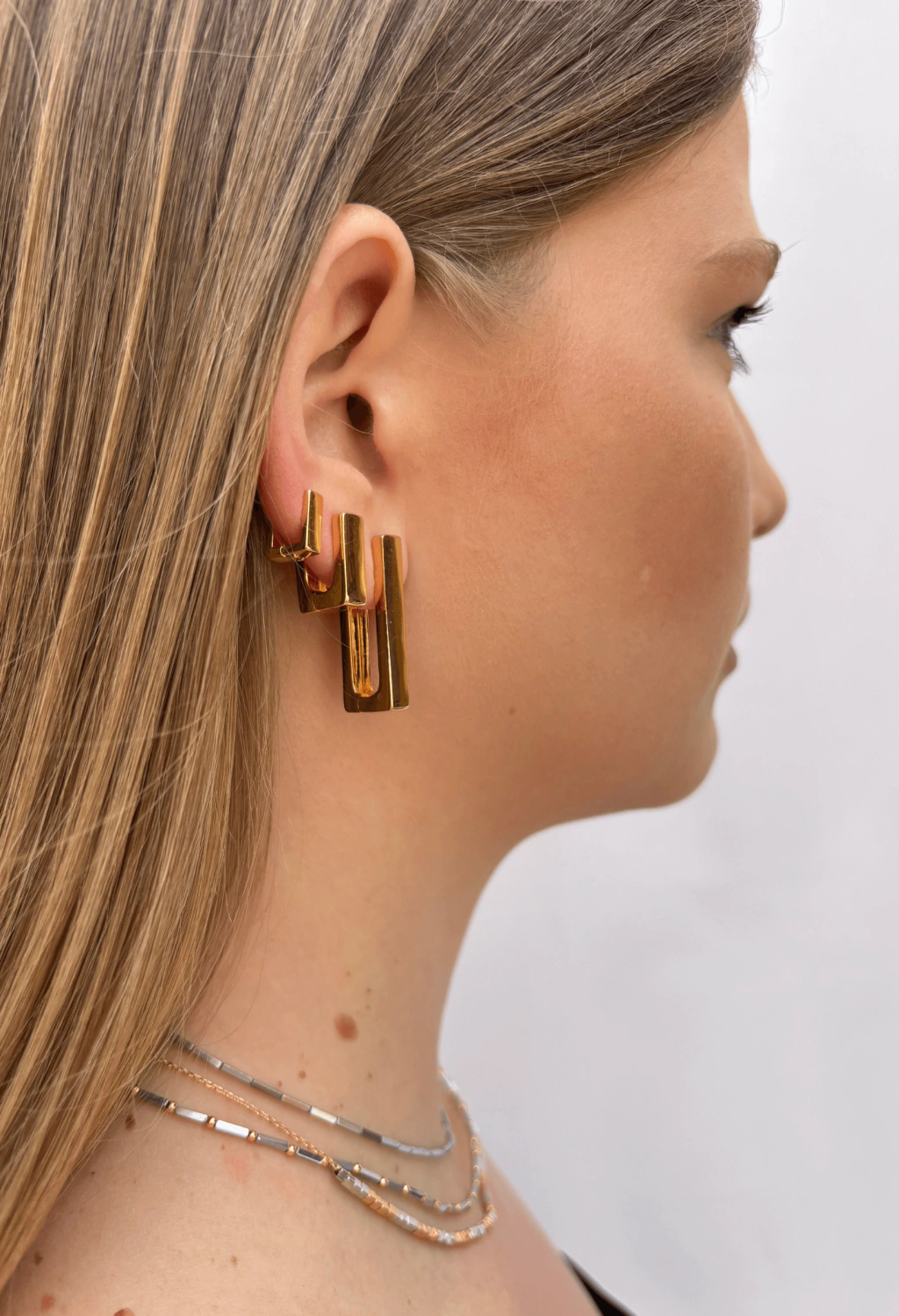 Nossa Argola Retangular é uma peça super básica e atemporal, o tipo de peça combina com tuuuuuudo e que vai ser sua amiga pra todas as horas. Seu design é super moderno e sofisticado e ela combina com literalmente TUDO, além de ser super confortável :)