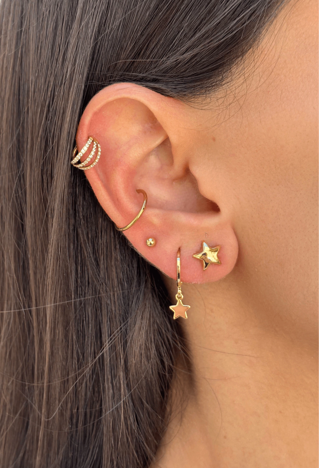 Nossa Argolinha Estrela é uma peça super delicada, básica e cool, perfeita pra quem adora o conforto e a praticidade dos brincos pequenos mas sem abrir mão do estilo. Pode ser usado no 1º, 2º e 3º furo, com outras argolinhas e também com brincos de pino, por ser uma peça super básica, ele combina com literalmente TUDO!