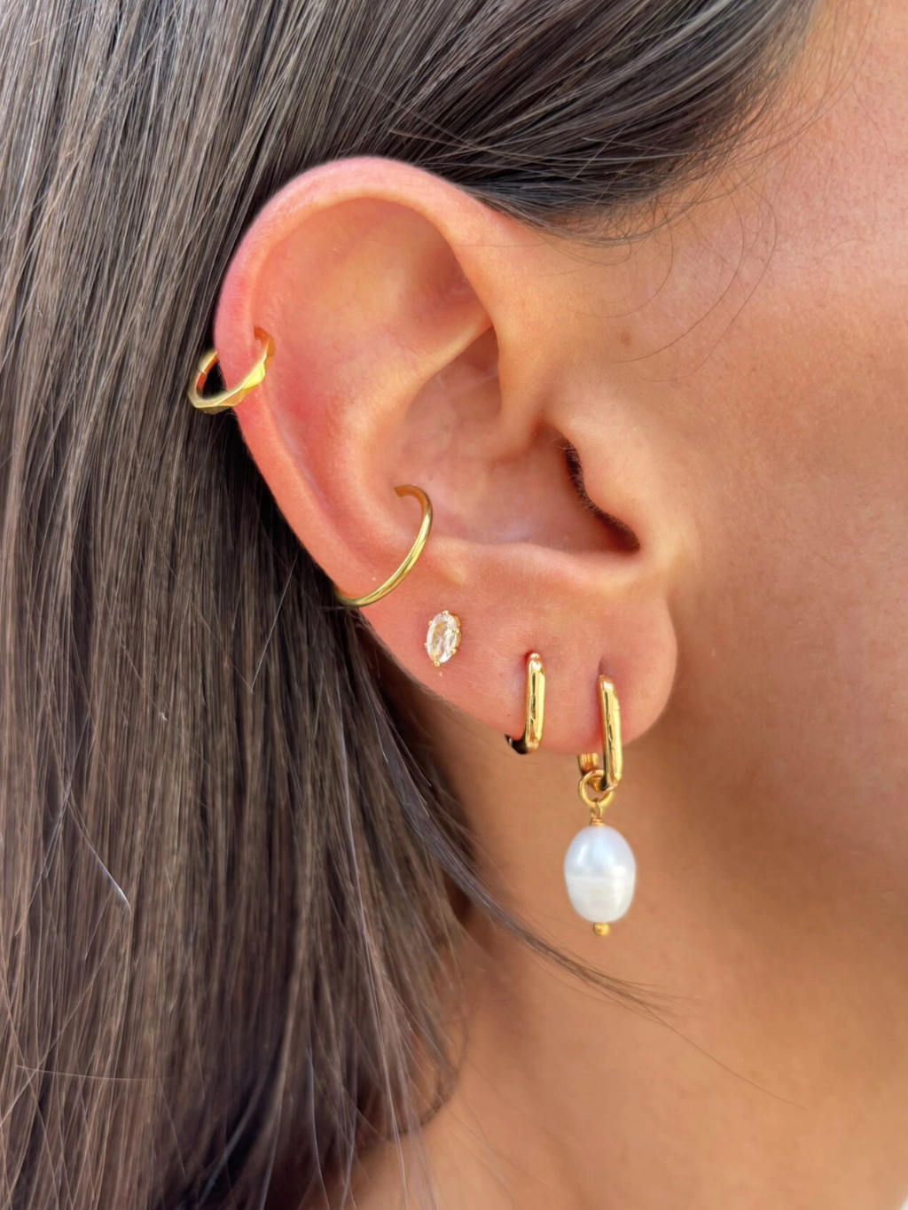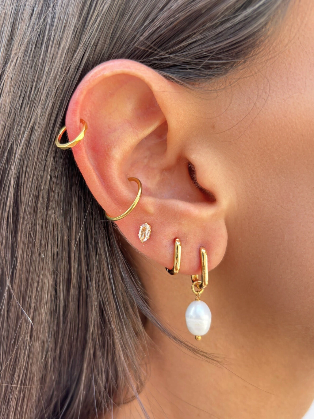 Nossa Argola Retangular é uma peça super delicada, básica e atemporal, perfeita pra quem adora o conforto e a praticidade dos brincos pequenos. Pode ser usado no 1º, 2º e 3º furo, com outras argolinhas e também com brincos de pino, por ser uma peça super básica, ele combina com literalmente TUDO!