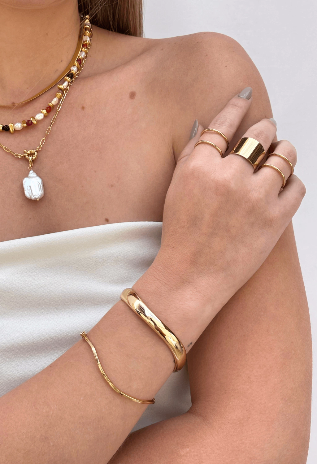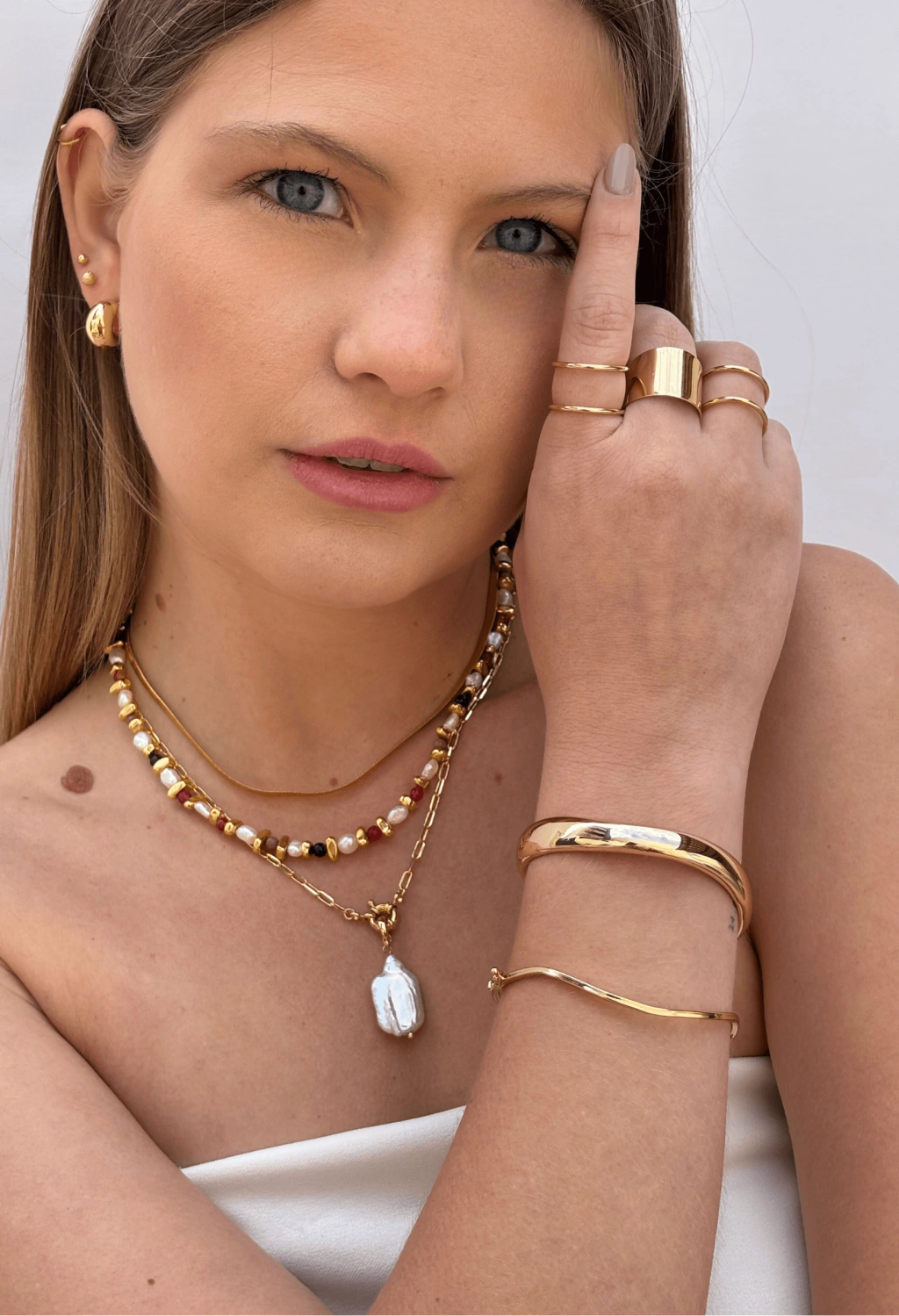 Os braceletes estão com TUDO nessa temporada e nós não podíamos deixar de trazer um maralhoso e sofisticado modelo pra vocês. Nosso Bracelete Tâmara é uma peça um pouco mais robusta mas ainda assim super feminina, a opção perfeita pra quem quer entrar na trend dos braceletes mas prefere peças menores. Pode ser usado sozinho, em dupla e também combinado com outras peças, já que é uma peça bem versátil. Além disso, ele vai bem em ocasiões mais casuais e também em eventos mais formais. Definitivamente, é uma peça que vale a pena investir :)
