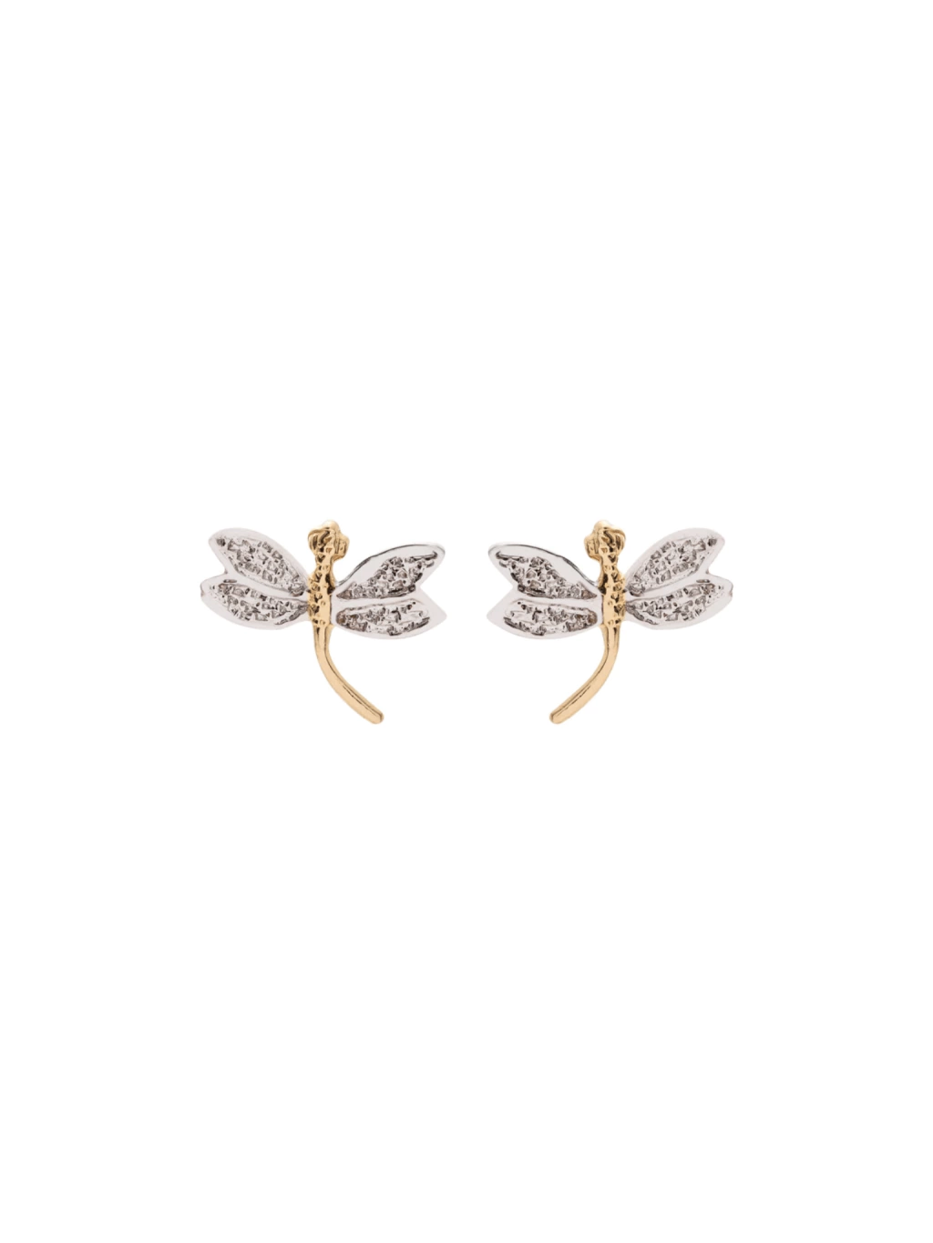 Brinco tipo pino em formato de libélula dourado e prateado