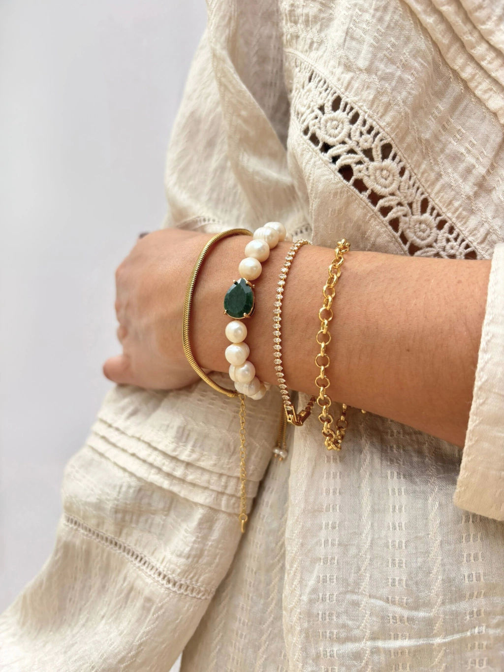 Esse mix é PERFEITO pra quem ama acessórios clássicos e atemporais. A pulseira Pérola + Esmeralda é a cereja do bolo, uma peça super elaborada e sofisticada, enquanto as outras são básicas e mega versáteis, perfeitas pra TODOS os momentos. Todas as peças podem ser usados com outras pulseiras e também sozinhas, numa vibe mais minimalista e delicada :)