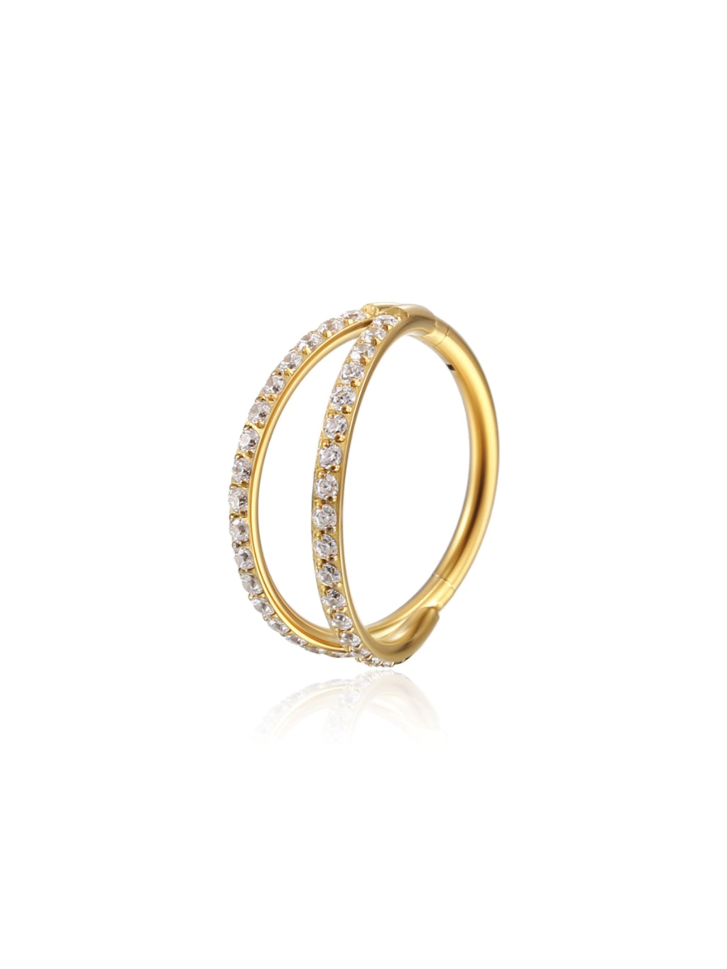 Nosso Piercing Full é um super queridinho por aqui e a escolha PERFEITA para quem busca uma peça moderna e cheia de personalidade. Seu design com duas fileiras cravejadas de zircônias cria um efeito visual de sobreposição, adicionando profundidade e brilho pro seu mix. Por ser uma peça mais impactante, é ideal pro hélix :))