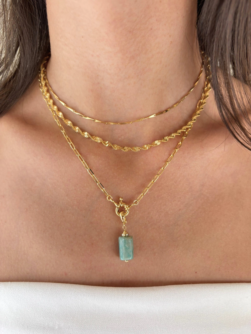 Nosso Pingente Amazonita é super interessante porque agrega informação de moda pra produção, já que é uma peça mais rústica, sem lapidação. Pode ser colocado em colares, pulseiras e até em brincos, uma peça super versátil e perfeita pra dar aquele up nas suas peças mais básicas! Fica lindo combinado com outros pingentes também, numa proposta mais cool e descolada :))
