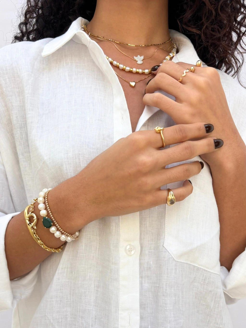 Nossa Pulseira Mini Riviera é a definição de sofisticação minimalista. É uma peça suuuper delicada e, por isso, pode ser usada tanto de dia quanto de noite, além de ficar linda com outras pulseiras e braceletes, numa proposta mais cool e elaborada. Ela também vai bem em QUALQUER ocasião, acompanhando looks mais casuais até os mais elaborados, como em casamentos e formaturas. Com certeza, essa peça será sua melhor amiga :)